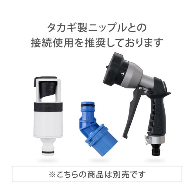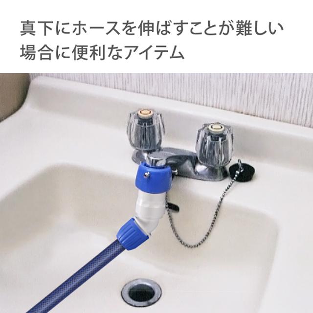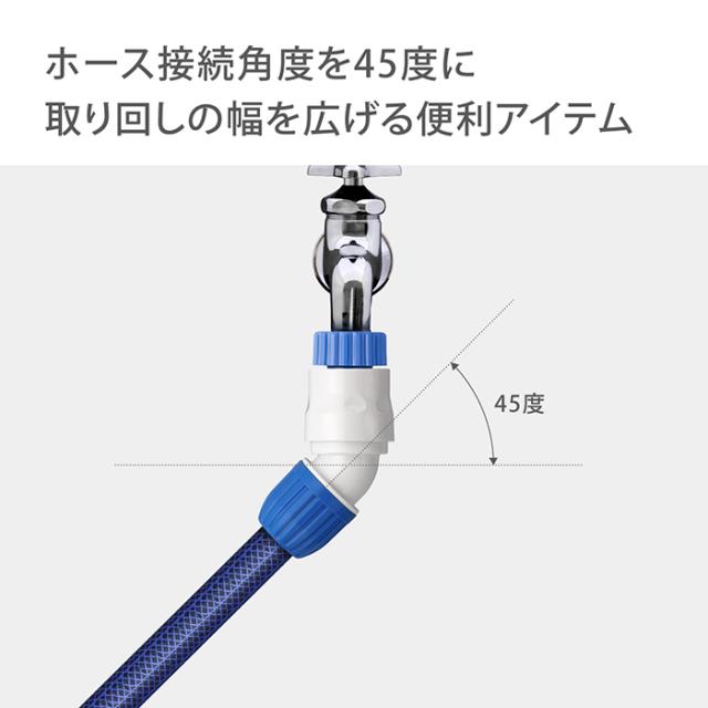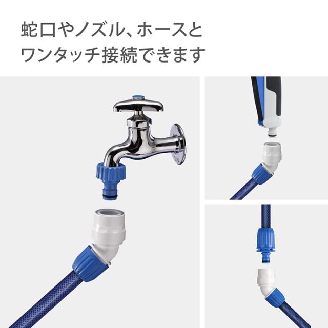 ホースやノズルの取り外しがワンタッチになる便利なアイテムです。ホースの角度を45度に変えて接続できます。