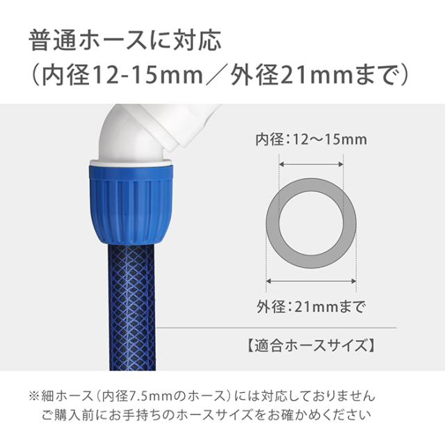普通ホース(内径12-15mm/外径21mmまで)に対応しています。