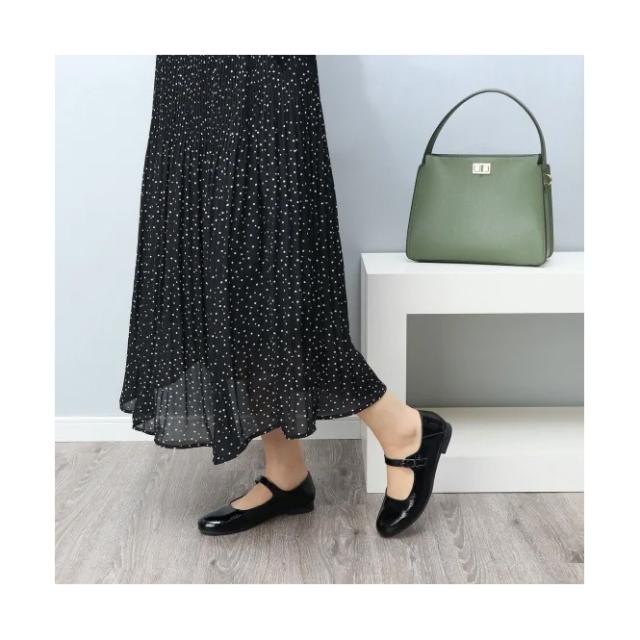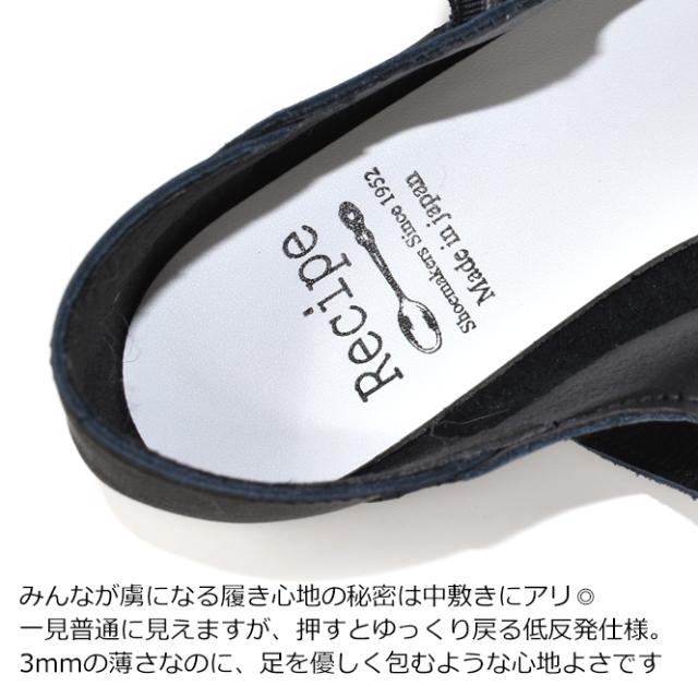 Recipe レシピ パンプス ローヒール 痛くない 歩きやすい 履きやすい フラットシューズ ストラップ オフィス 黒 ブラック スムース シワ加工 エナメル 疲れない フレットパンプス レディース 靴 本革 レシピ 日本製 春新作 ポイント消化