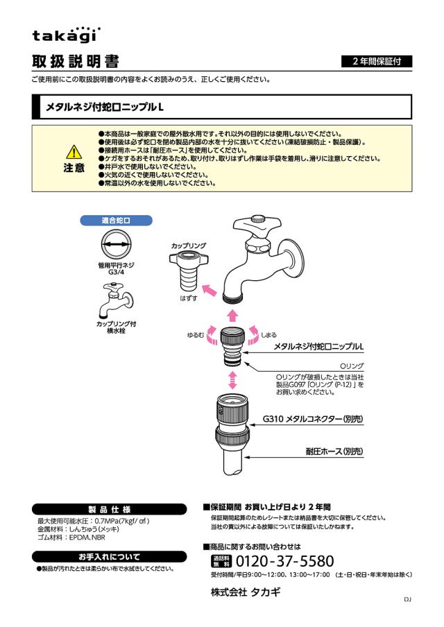 蛇口ニップル メタルネジ付蛇口ニップルL G313 タカギ takagi 公式 安心の2年間保証