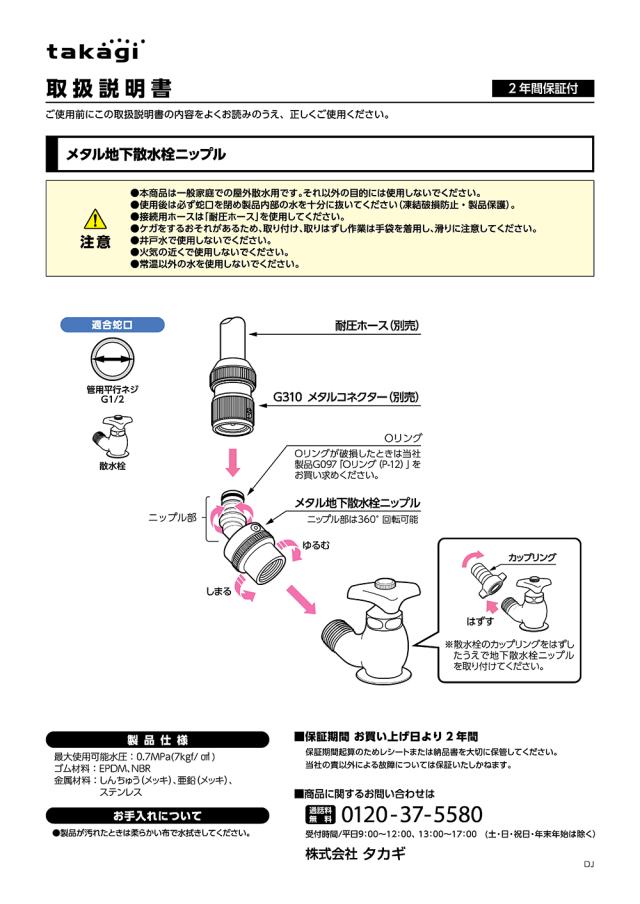 蛇口ニップル メタル地下散水栓ニップル G318 タカギ takagi 公式 安心の2年間保証