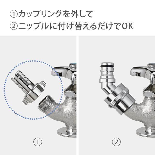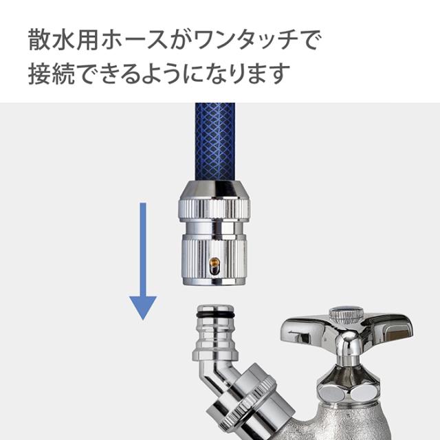 地下散水栓蛇口に取り付けて、コネクター(別売り)付きホースの取り外しがワンタッチに取付られる地下散水栓ニップルです。