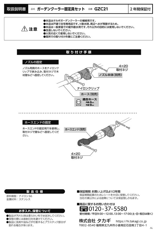 交換用部品 ガーデンクーラー固定具セット 10組入 GZC21 タカギ takagi 公式 安心のメーカー2年間保証