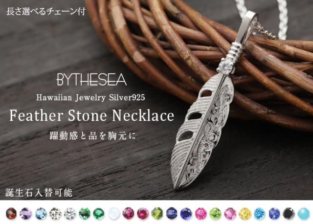 ハワイアンジュエリー ネックレス シルバー ネックレス 刻印 無料 誕生石入替可 フェザー 羽根 羽 シルバー925 ギフトラッピング可能 長さ選べるBY THE SEA バイザシー 彼女 妻 女性 レディース プレゼント ホワイトデー 卒業式 入学式 【品番:CG-SP324】