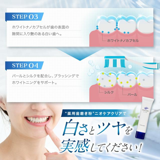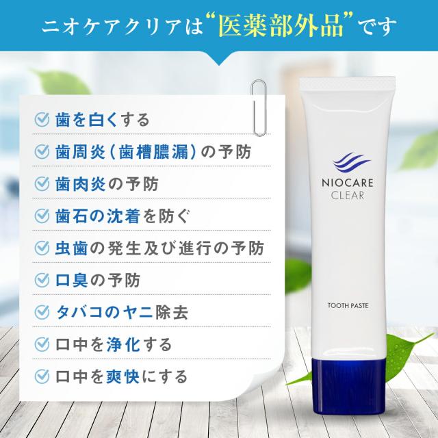 - こちらのニオケアクリアを6日使いました。 ホワイトニングができる歯磨き粉に興味はあったものの、強いミント味が苦手で歯磨き粉自体を敬遠していたんですが、知人に紹介されせっかくならと使ってみました。 先に...