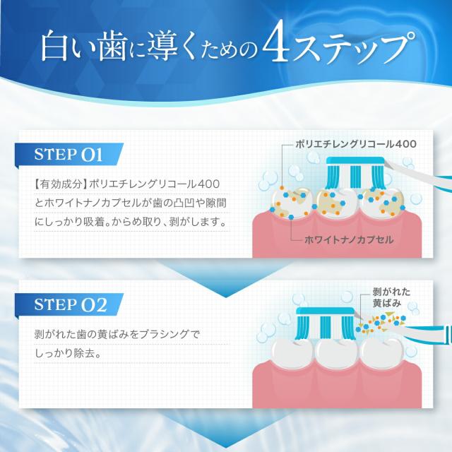 - 最近、鏡を見る度に歯の黄ばみが気になって、思い切って購入しました。最初、パッケージが洗顔料みたいだし、歯磨き粉の味もしないし、不安でしたが、使って3日で効果を実感できるようになりました。 まず、口の...