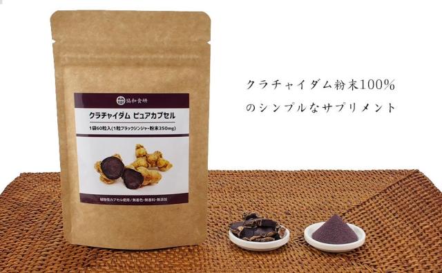 クラチャイダム乾燥スライス | クラチャイダム抽出エキス粉末 | クラチャイダムはまず、スライスして乾燥させ乾燥スライスで日本に輸入されます。 その後、国内にて粉砕滅菌加工し粉末を植物性カプセルに充填します。 |