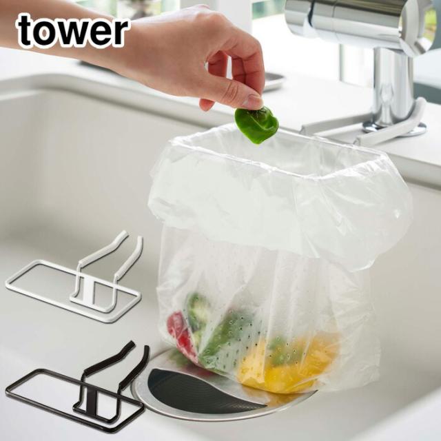 山崎実業 タワー 蛇口にかけるポリ袋ホルダー ホワイト 4825 ブラック 4826 yamazaki tower【シンク内 ゴミ入れ/生ごみ/キッチン/台所/タワーシリーズ】