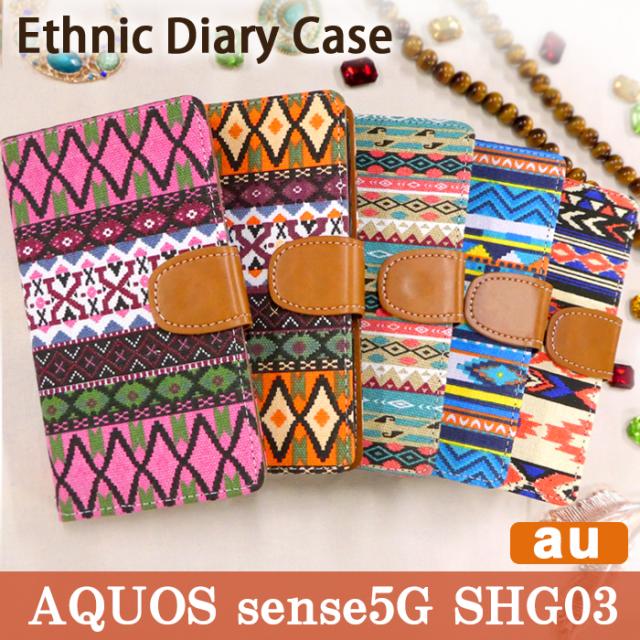 AQUOS sense5G SHG03 ケース カバー 手帳 手帳型 エスニック スマホケース スマホカバー アクオス センス5G