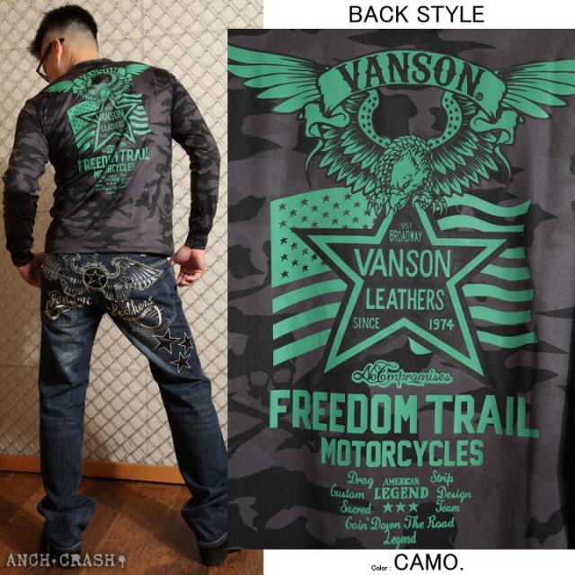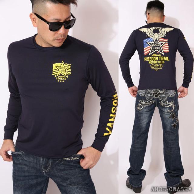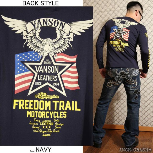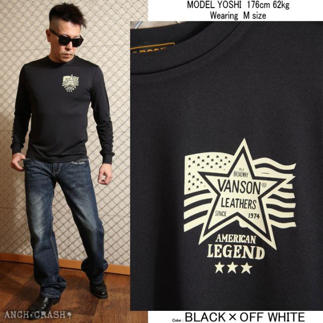当店別注! VANSON バンソン ドライ長袖 Tシャツ フラッグ(ACVL-905)吸汗速乾 抗菌防臭 スタンダードサイズ【メール便送料無料】ポスト投函の為※日時指定・代引き・ラッピング不可