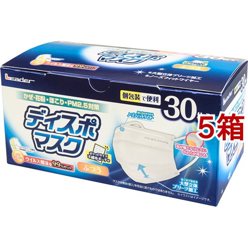リーダー ディスポマスク ふつう 個包装(30枚入*5箱セット)[マスク その他]