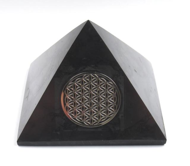 シュンガイト ピラミッド5cm フラワーオブライフ 神聖幾何学図形と立体パワーの融合 パワーストーン shunpy50f