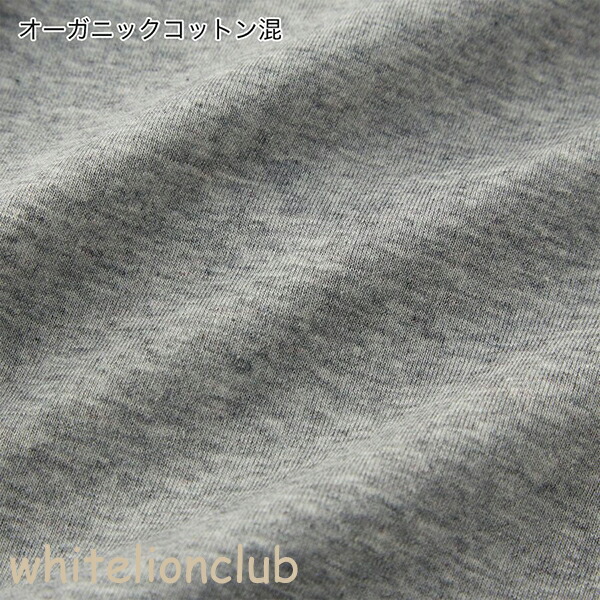オーガニックコットン混の肌ざわりが、やさしく体にフィット。生地の柔らかな風合いが長持ちするよう、耐久柔軟の加工付き。