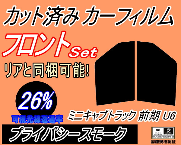 フロント (b) ミニキャブトラック U6 前期 (26%) カット済みカーフィルム 運転席 助手席 三角窓 左右セット スモークフィルム フロントドア 車種別 スモーク 車種専用 成形 フイルム 日よけ 窓 ガラス ウインドウ 紫外線 UVカット U61 U62 ミツビシ