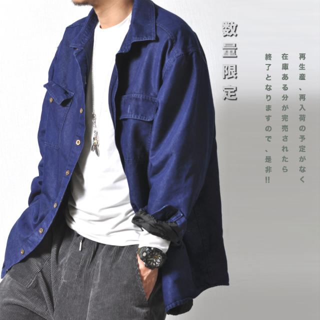 tsa 裏地付きデニムシャツ ビッグシルエット メンズ #T610 レディース ジャケット 大きめサイズ BL