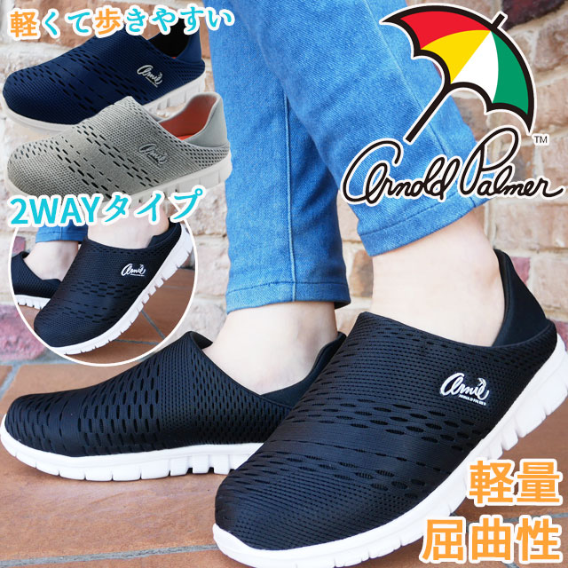 レディース スリッポン ローカット 人気 流行 Arnie Arnold Palmer 2WAY AN0908 アーニー アーノルド パーマー ウォーキング カジュアルシューズ 軽量 靴 ブラック 黒 ネイビー グレー テレワーク 在宅勤務