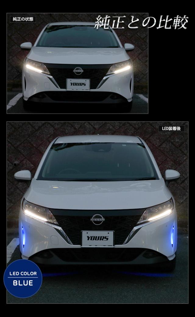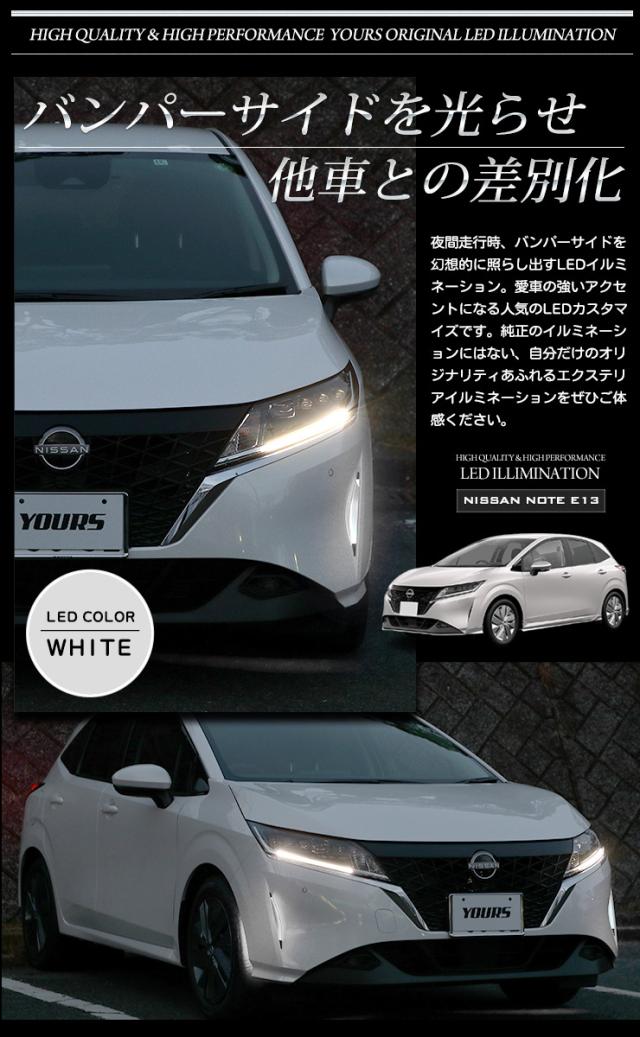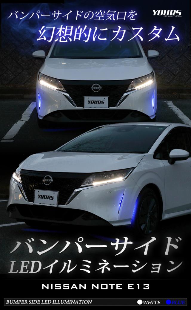E13 ノート専用 バンパーサイドLEDイルミネーション 【全2色】 NOTE ブルー ホワイト 日産 ランプ バンパー LED [5]-1