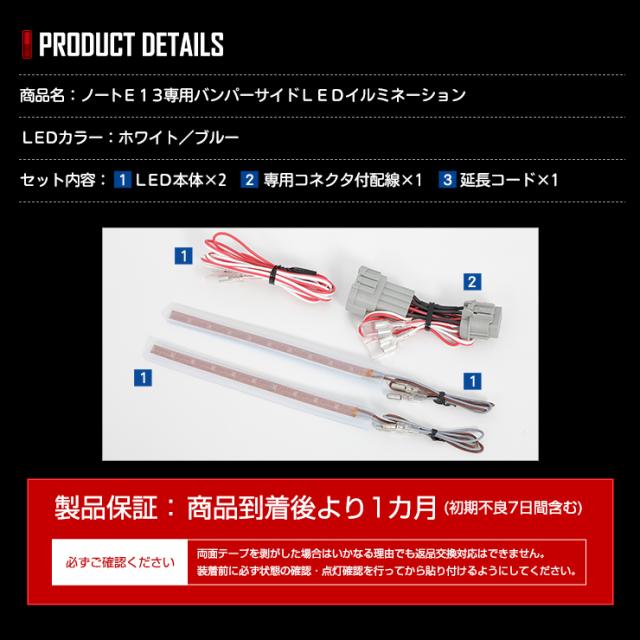 | 商品名 | E13 ノート専用 バンパーサイドLEDイルミネーション |
