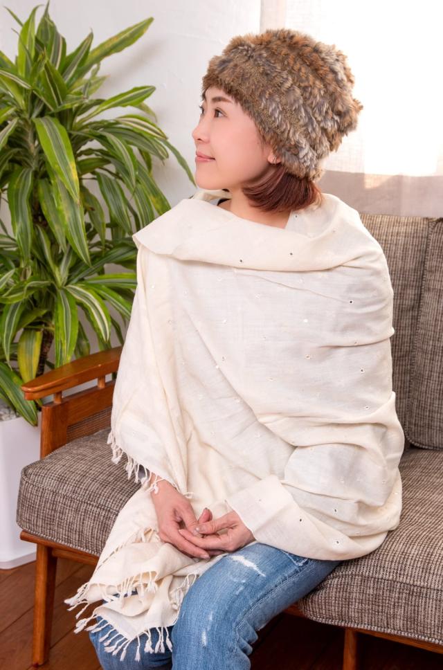 大きくて便利な大判ショールは使い勝手が良いです。手織りの温かさが伝わってきます。