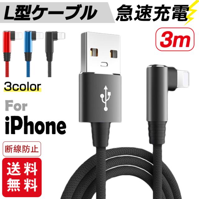 【 30% オフクーポン配布中】新作 3m iPhone充電ケーブル ライトニング L字型デザイン iPhone 長さ3m 充電器 断線防止 急速充電 アイフォン 3color スマホagesugi_ssm