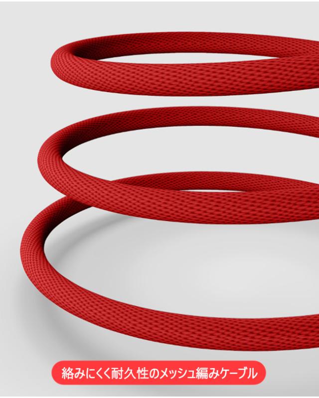 *ケーブルの表面にナイロンメッシュを使用。ねじれや折れ・断線に強いタフな仕様となっています。