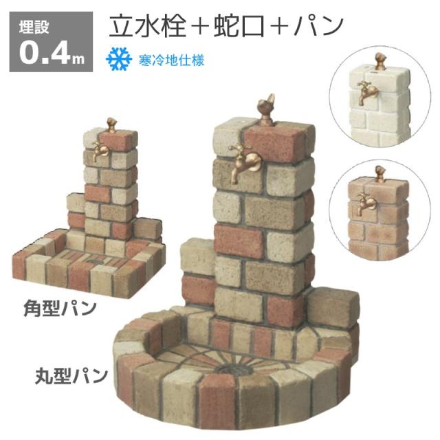 水栓 水栓柱 立水栓 庭 セット 蛇口 ガーデンパン 不凍水栓 アンティークレンガ調 サナンド 丸型 角型 埋設0.4m 寒冷地対応 蛇口付 手洗い場 外 水道 おしゃれ 外水栓