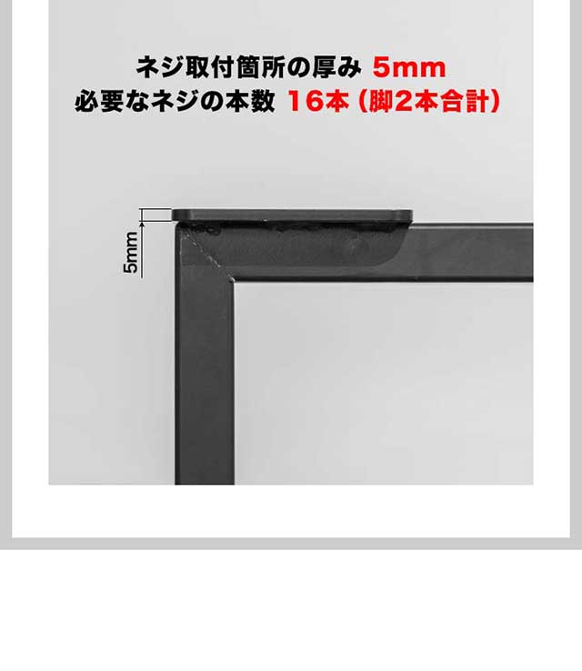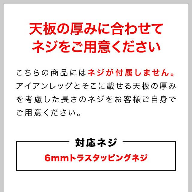 | 特記事項: ※天板・ネジは付属しません。 ※本製品とそこに載せる天板の厚みを考慮した長さのネジをご用意ください。 ※天板に下穴を開けてからネジを取り付けてください。 ※天板の素材や大きさ・厚み等によって耐荷重は異なります。 |