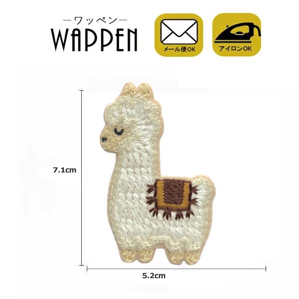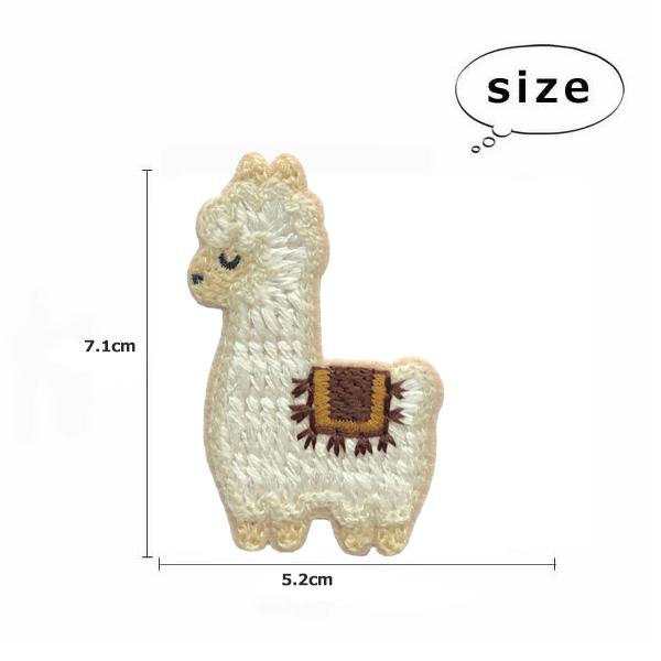 アルパカ ワッペン 刺繍 アイロン接着 縦7.1cm×横5.2cm 動物 アイロンワッペン かわいい 入園 入学 アップリケ デコ 手芸 母の日 プレゼント ギフト
