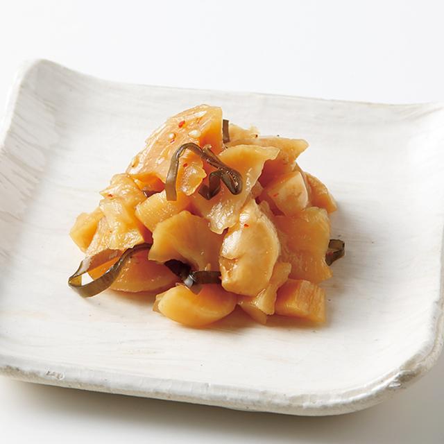 昆布と生姜、一味を加えて漬け込んだ割り干し大根。