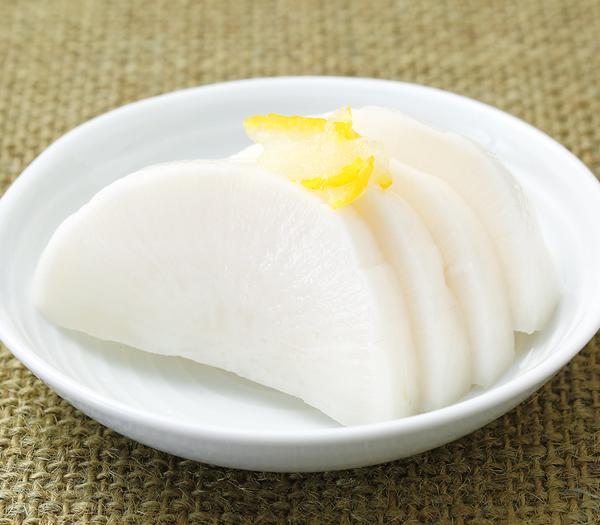 | 原材料 | 大根、漬け原材料(調味酢、糖類(砂糖、オリゴ糖)、発酵調味料、ゆず果汁、ゆずの皮、食塩、昆布エキス、昆布)/調味料(アミノ酸)、ソルビトール、酸味料 |