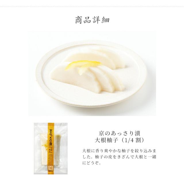 京つけもの西利 京のあっさり漬 大根柚子 1/4割 京都 西利 老舗 漬物 高級 浅漬け お茶漬けおつまみ ごはんのお供 お土産 大根 ゆず