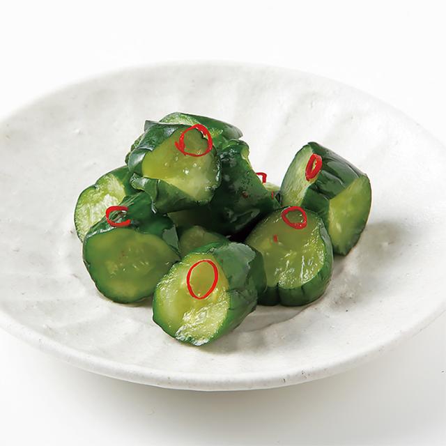 胡瓜を唐辛子がきいたピリ辛味に漬け込みました。