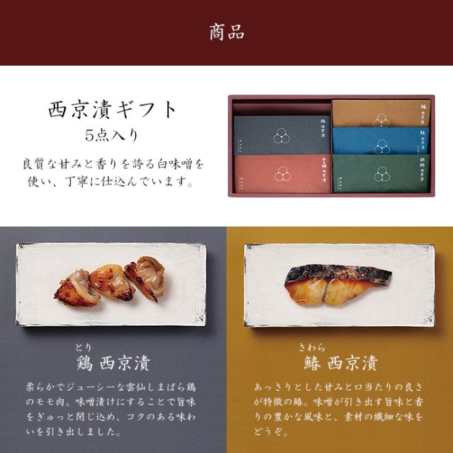 【酵房西利 公式】西京漬5点詰合せ KN-5 京都 西利 漬物 ギフト プレゼント 西京漬け 西京焼き ギフト プレゼント ご挨拶 グルメ 西京漬 味噌漬 銀鱈 鰆 鶏 鮭 トラウトサーモン 金目鯛 京都 西利 京つけもの西利