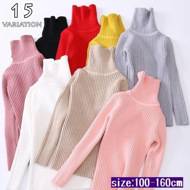 セーター ニット 長袖 キッズ ジュニア 女の子 男の子 タートルネック ハイネック トップス プルオーバー リブ編み シンプル