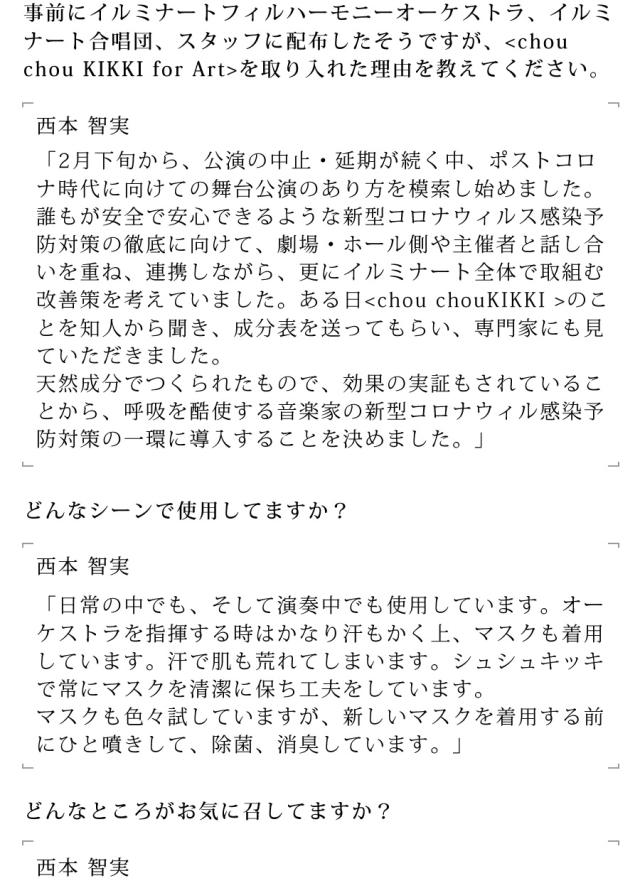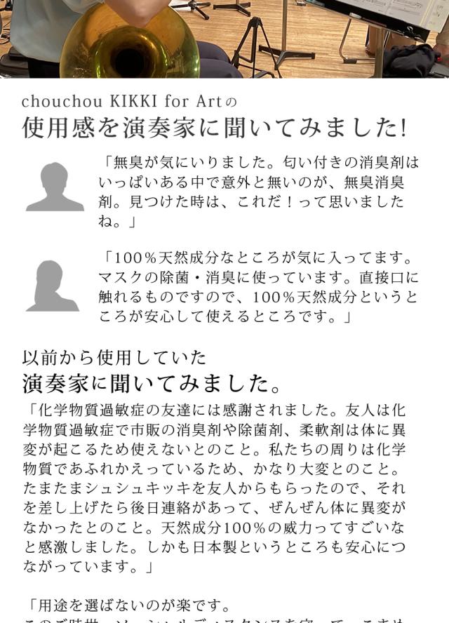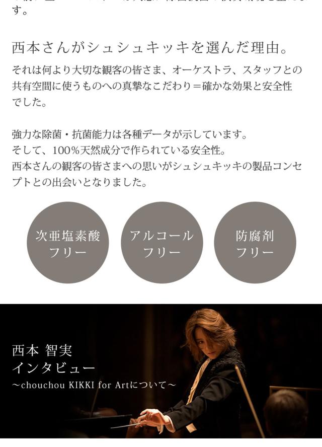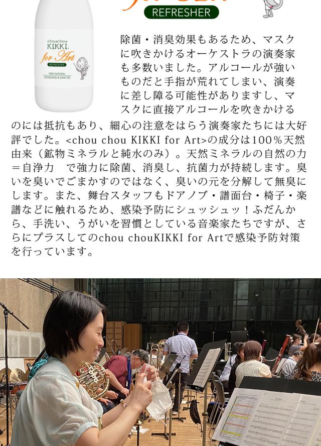 天然成分100%で安全・安心に除菌・消臭できるシュシュキッキ リフレッシャーに音楽家たちのために選ばれた特別バージョンの『for Art』が誕生。