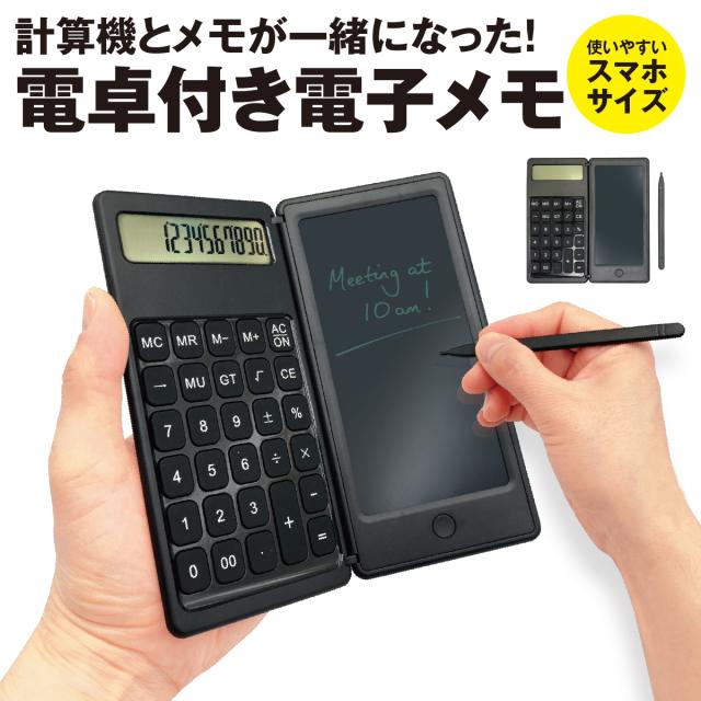 - 電子メモパッドと電卓が一体になったタイプを探していて、購入させて頂きました。 電卓のボタンの反応が今一かと思いましたが、これはこれで慣れると使いやすいです。 電卓とメモほ常に使う為、大変重宝しています...