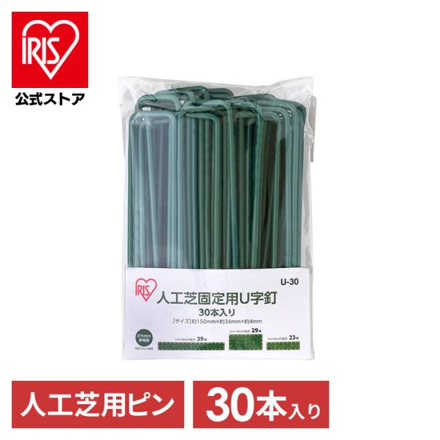 人工芝 固定用U字釘 30本入り U-30 アイリスオーヤマ 人工芝 人工芝マット 人工芝ロール 人工芝 U字釘 U字ピン おさえピン 固定用 固定ピン 庭 ベランダ 芝生