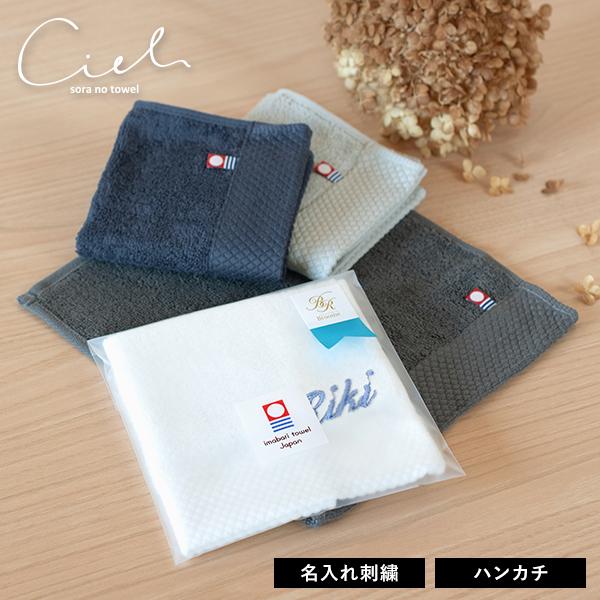 (今治袋ラッピング)【お名前刺繍入り】ハンカチ 1枚 今治タオル 名入れ シエル ギフト タオル 送料無料 (ポスト投函) ※のし対応不可・紙袋付属なし プチギフト タオルハンカチ 記念品 退職 送別 卒団 レディース メンズ 女性 男性 大人 おしゃれ 今治タオルブランド