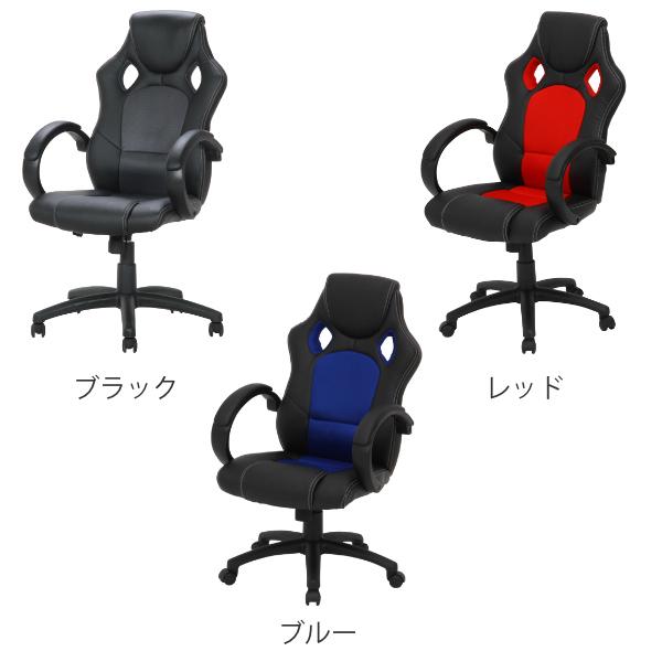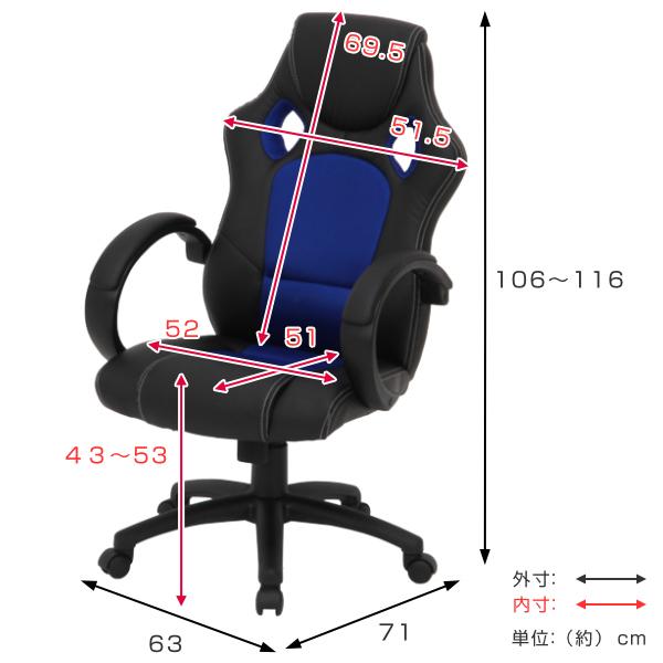 デスクチェア 座面高43〜53cm 高さ調整 ゲーミングチェア レーシングチェア キャスターチェア 椅子 ( イス チェア パソコンチェア ワークチェア PCチェア オフィスチェア ハイバック ロッキング機能 肘掛け オフィス )