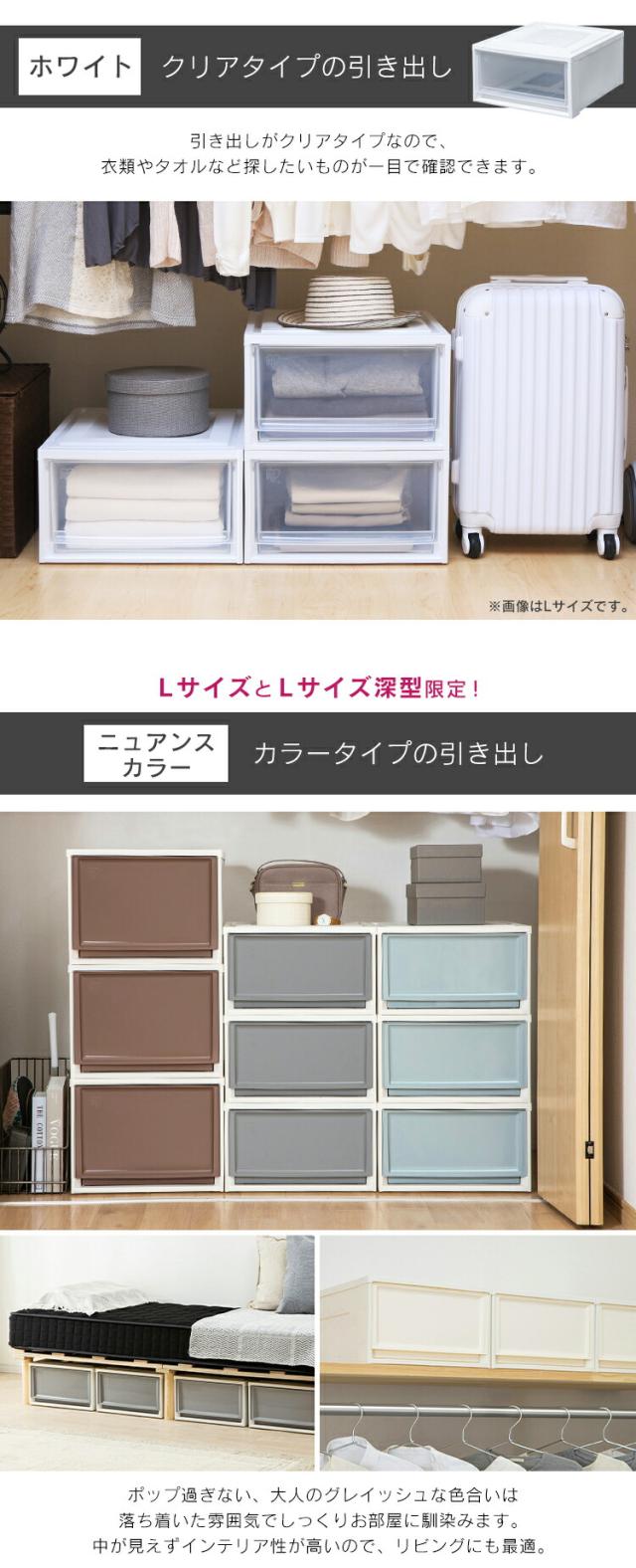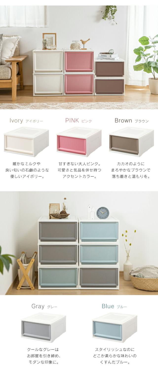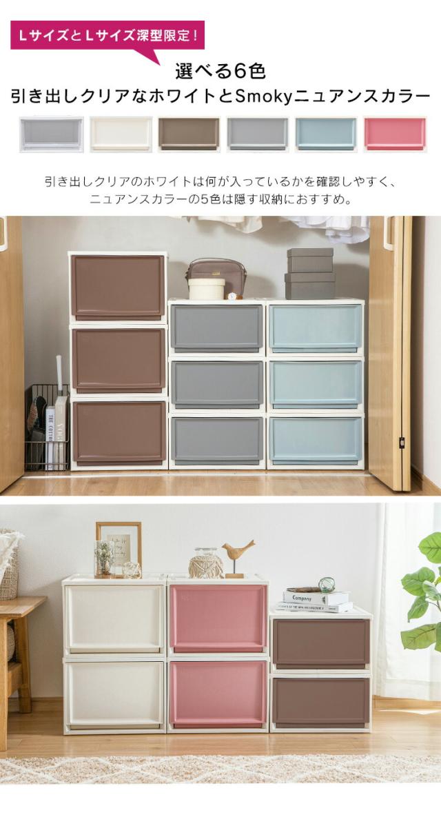 選べる6色。引き出しクリアなホワイトとSmokyニュアンスカラー。ホワイトは引き出しがクリアなので何が入っているかを確認しやすく、ニュアンスカラーの5色は隠す収納におすすめです。