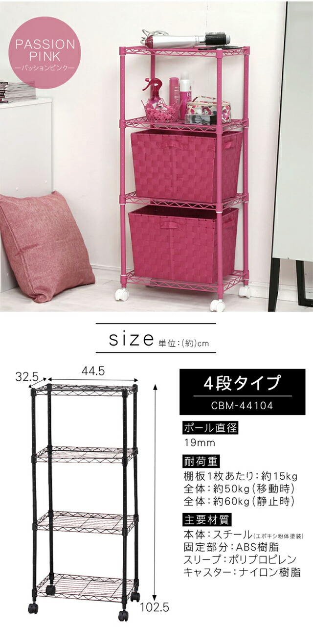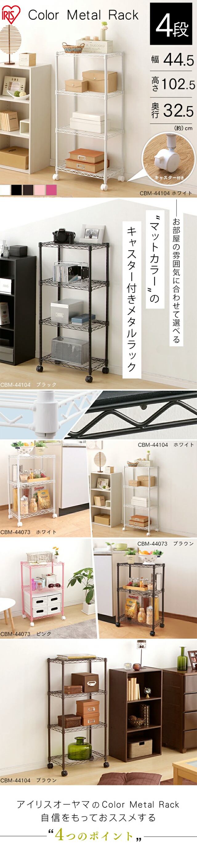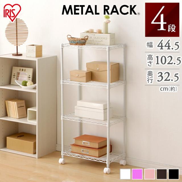 スチールラック 幅45 奥行30 高さ100 4段 ラック 収納棚 カラーメタルラック 4段 キャスター付き CBM-44104 アイリスオーヤマ メタルシェルフ スチールシェルフ 収納 オフィス リビング クローゼット キッチン