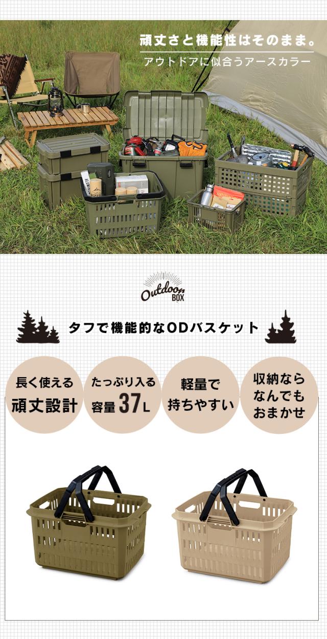 収納ボックス 収納ケース おしゃれ コンテナボックス 37L BT-OD37 バスケット 取っ手付き コンテナ ハードケース トランクボックス キャンプ DIY アウトドア BBQ 収納BOX 工具収納 ツールボックス ガーデニング 衣類 食品 ストック 避難用品