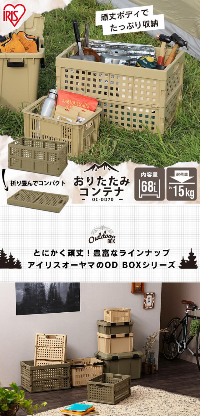 収納ボックス 収納ケース 折りたたみ おしゃれ コンテナボックス 70L OC-OD70 屋外 コンテナ おしゃれ ハードケース トランクボックス 車載 レジャー キャンプ DIY アウトドア ベランダ 庭 トランクカーゴ BBQ 工具 ツールボックス ガーデニング 衣類 食品 ストック 避難用品