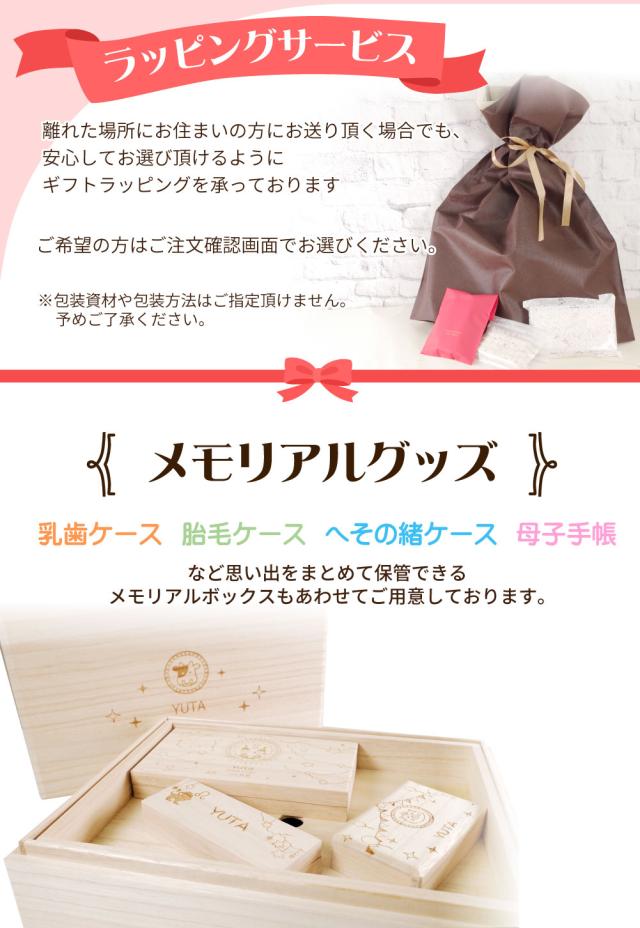 同じデザインの乳歯ケースやメモリアルボックスも販売しております。