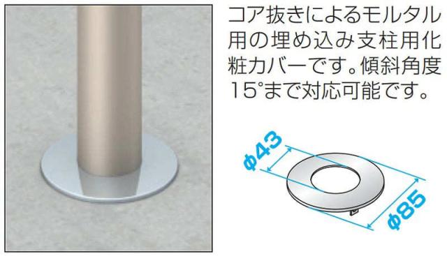 コア抜きによるモルタル用の埋め込み支柱化粧カバーです。傾斜角度15°まで対応可能です。