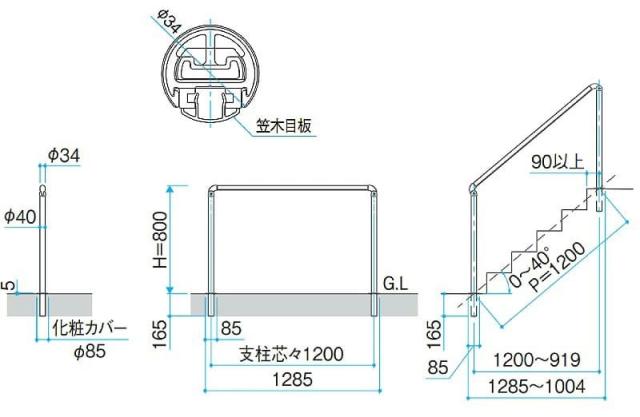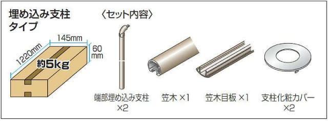 ・セット内容:端部埋め込み支柱×2、笠木×1、笠木目板×1、支柱化粧カバー×2