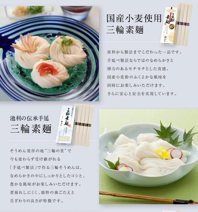 国産小麦使用三輪そうめん:小麦粉(小麦(国産))、食塩、食用植物油