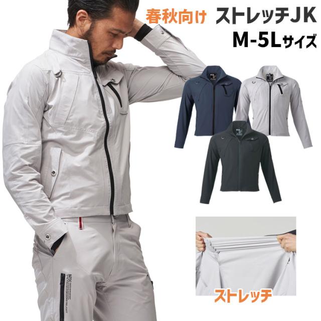 ジャケット 春夏 作業着 作業服 メンズ 【The tough ダブルストレッチジャケット/0434】 ブルゾン 長袖 大きいサイズ ストレッチ素材 軽量 スリムスタイル アタックベース