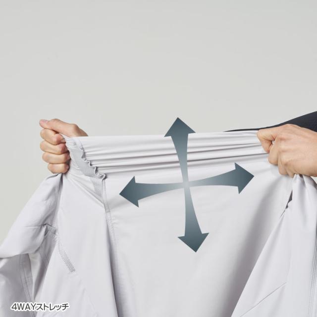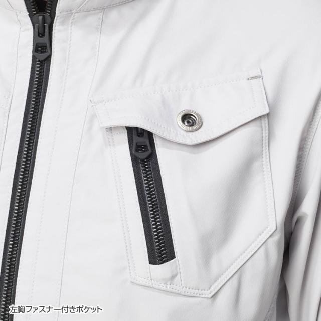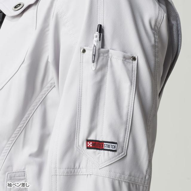 特 長/●ダブルストレッチ ●脇メッシュ ●左胸ファスナー付きポケット ●左袖ペン差し