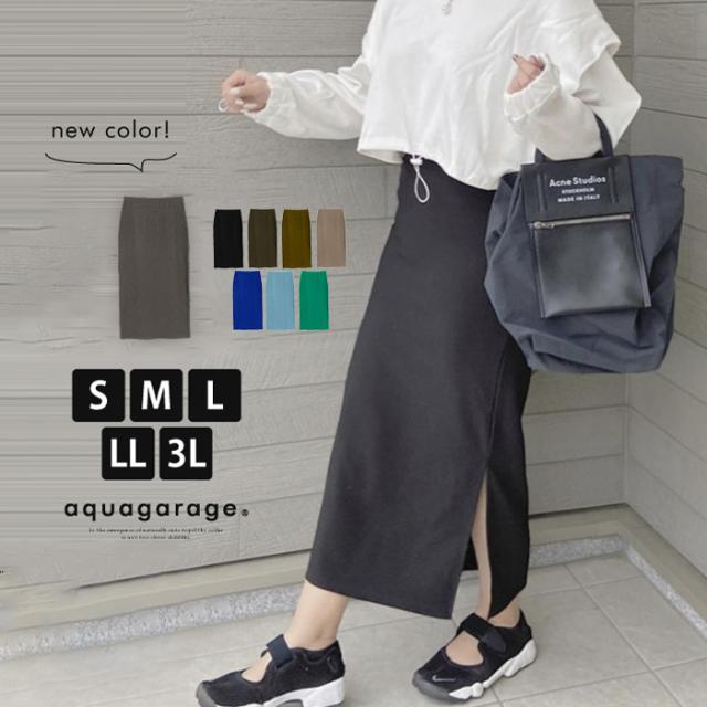 ≪ゆうメール便配送30・代引不可≫ ストレッチタイトスカート レディース 春 夏 S M L LL 3L ロング丈 サイドスリット アクアガレージ aquagarage